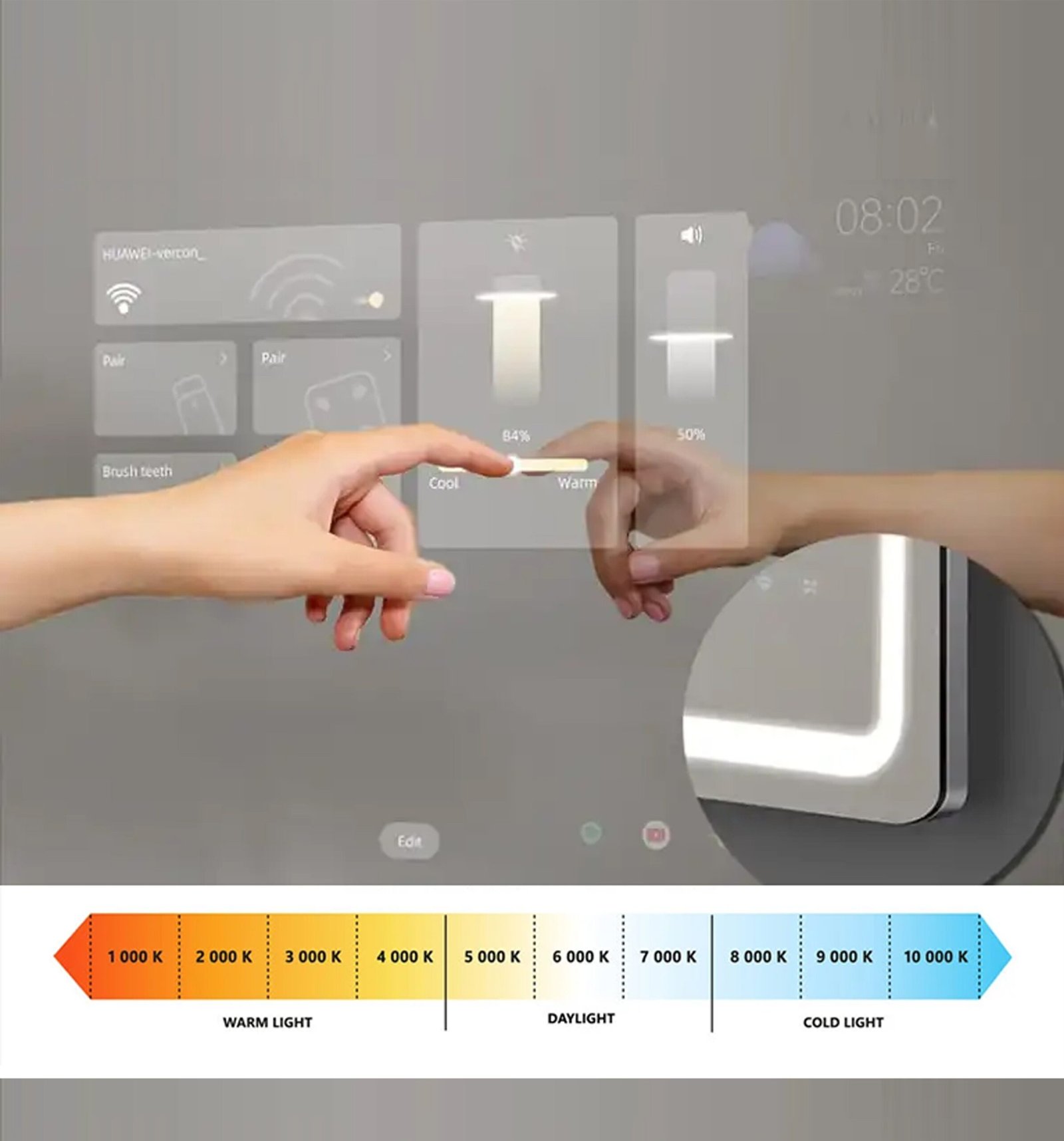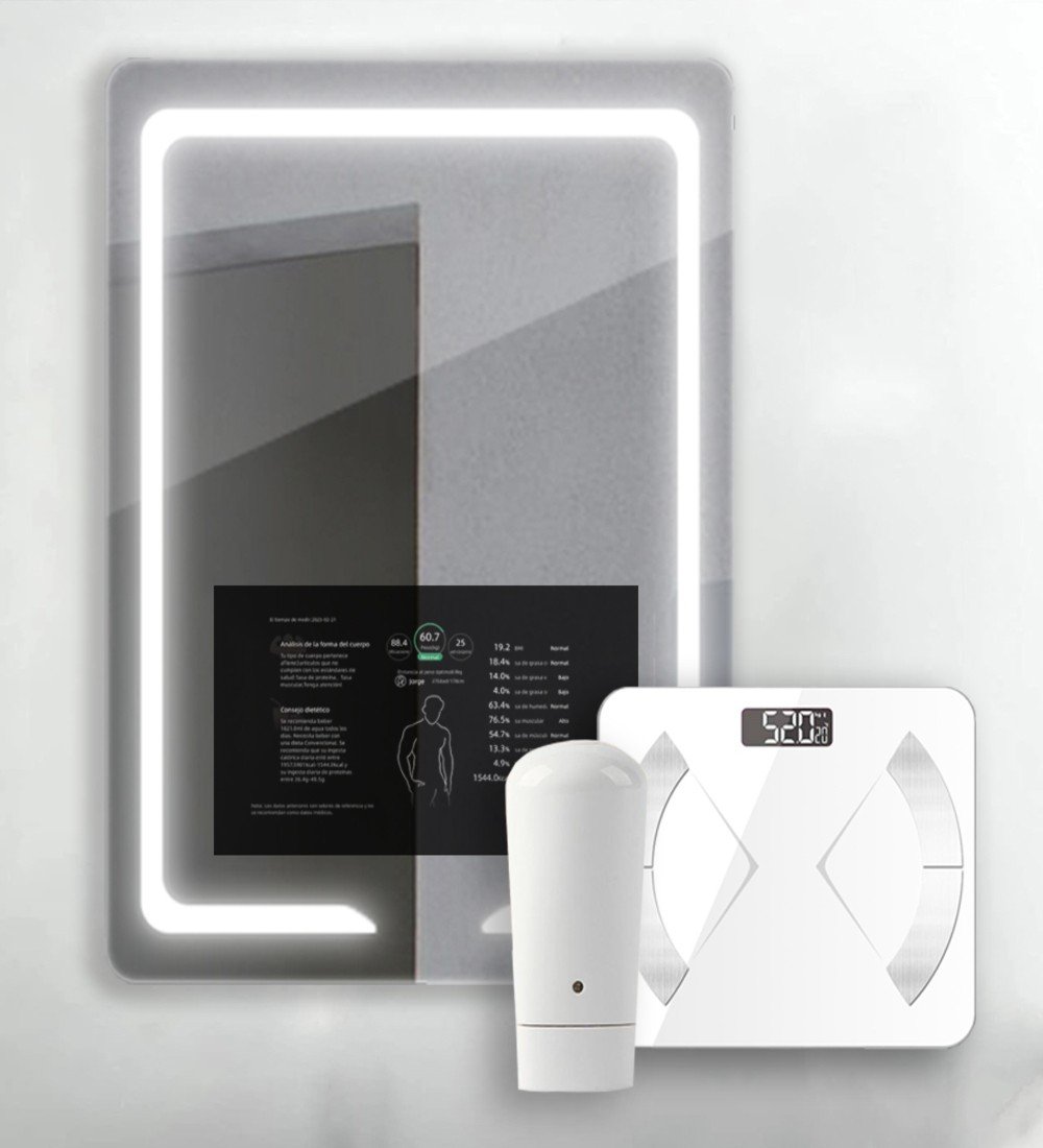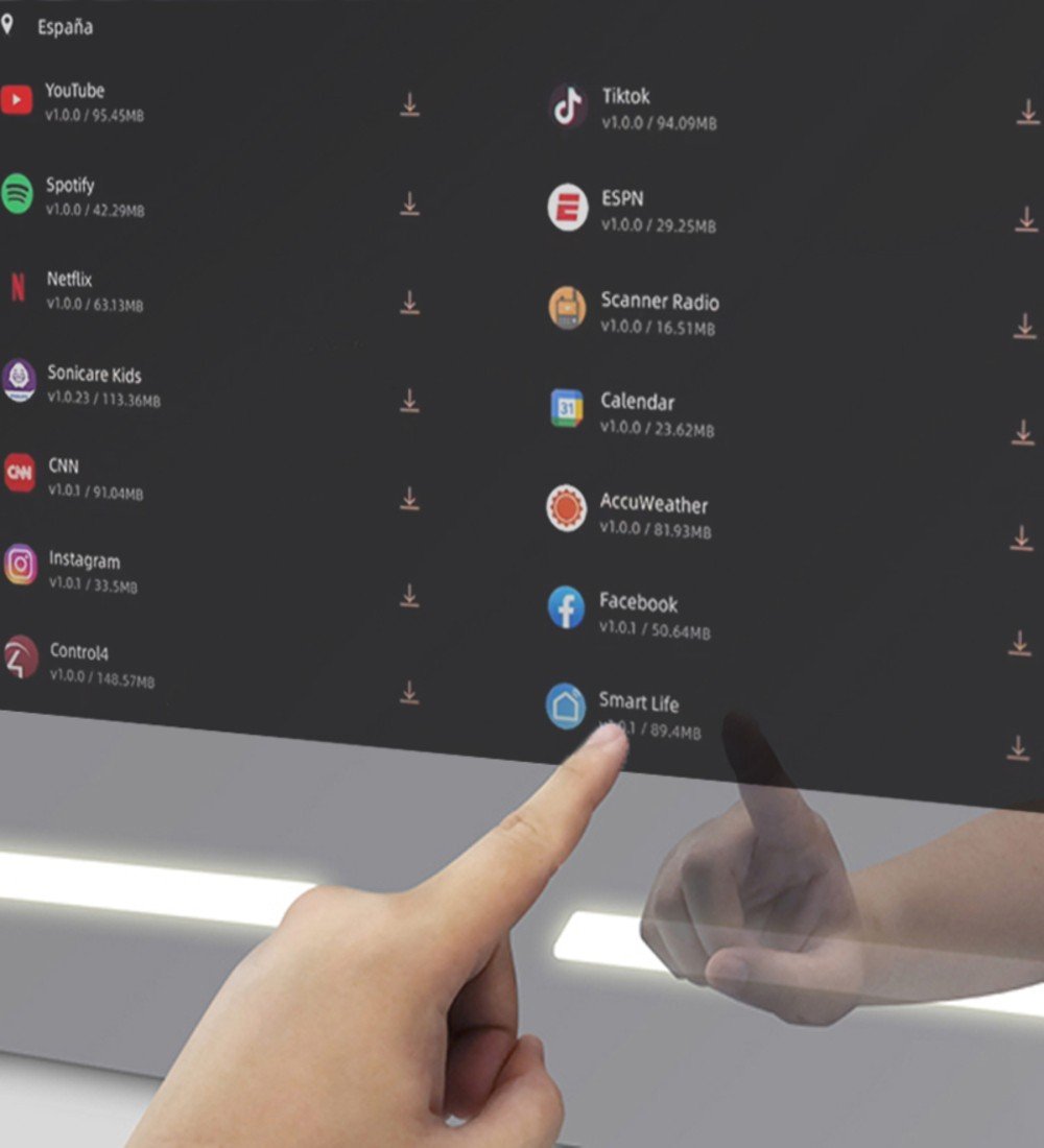 Vertical intelligent mirror V30 for bathroom with graduable front lighting and 21.5″ touchscreen with anti-print coating. Your di know simple and minimalist together with the functionality of your screen to play videos, series and movies, it allows you to be integrated into home spaces such as bathrooms, living rooms, bedrooms or living rooms. Buying touchscreen mirrors at the best price is much easier than you think.